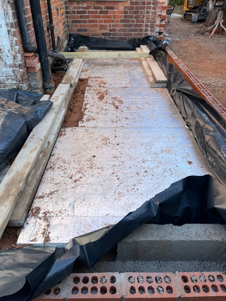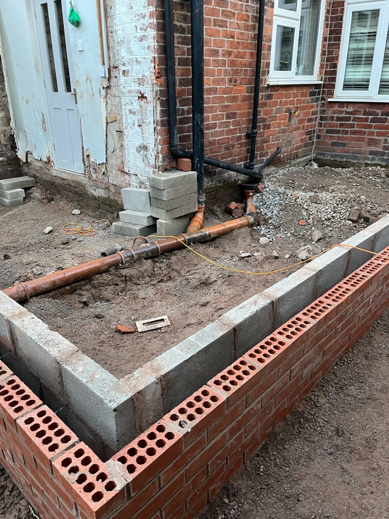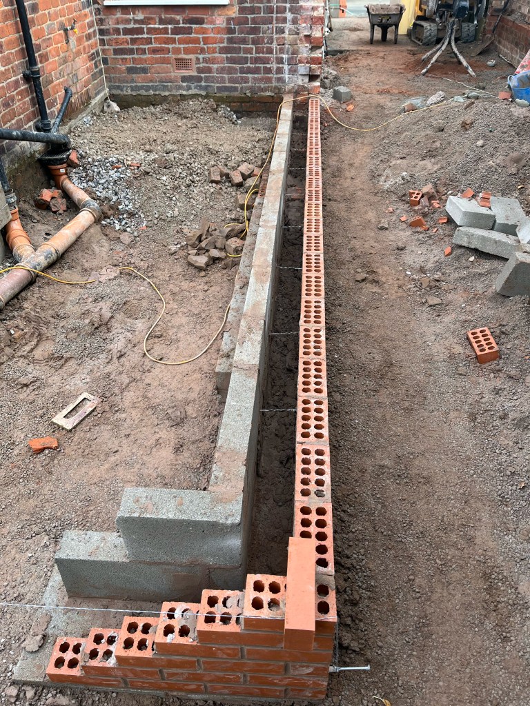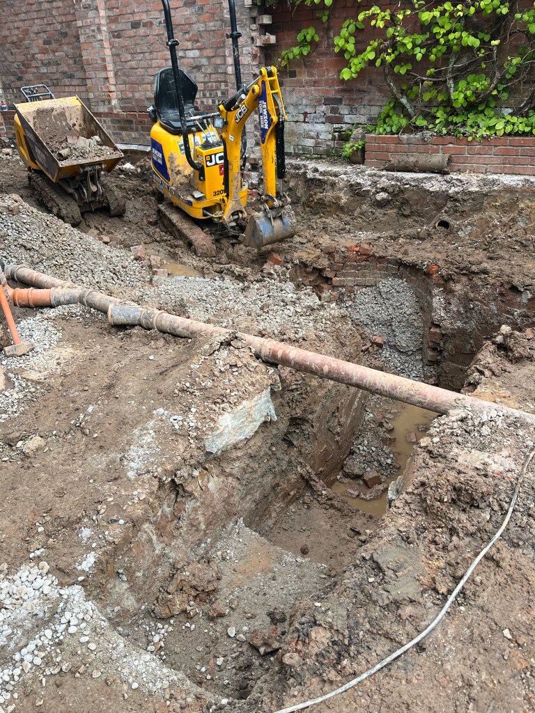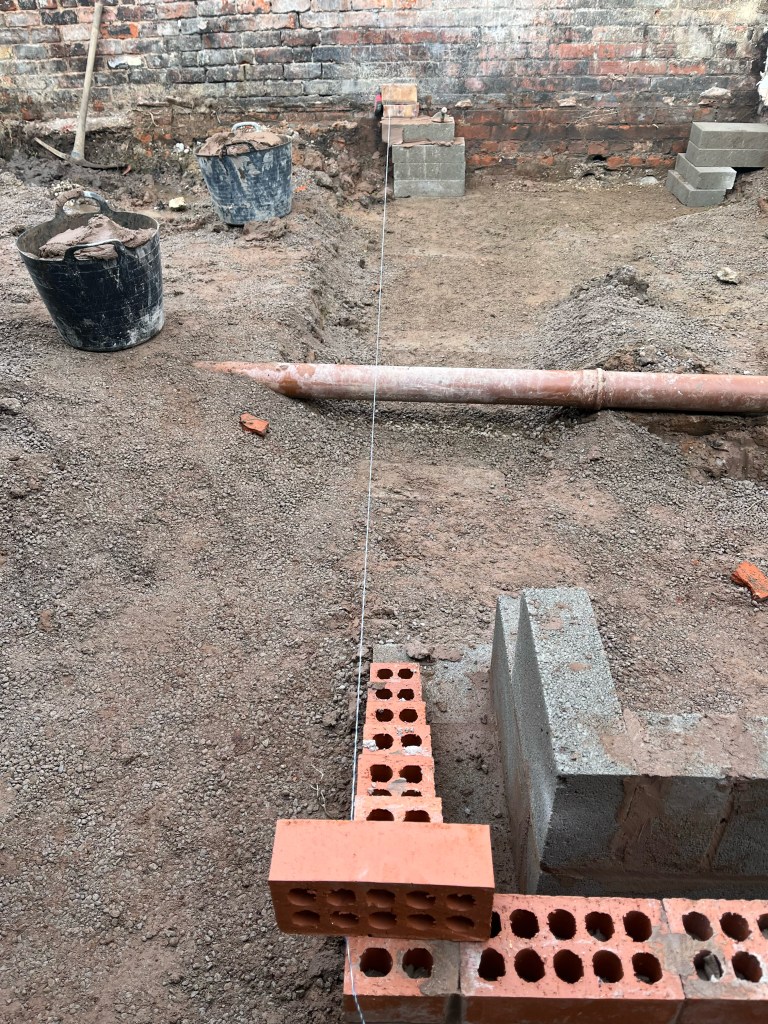 Once the drainage has been dealt with work can begin on digging out the trench to begin work on the foundations